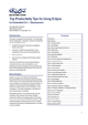 This paper presents a selection of 27 Eclipse IDE tips and tricks gathered from the QNX® development community, the QNX Community Portal for open development, Eclipse.org forums, and public web sites and blogs that offer Eclipse-related expertise. We identified these tips as most interesting and useful to developers, and we present them here with the hope that they will help make you more productive when you use an Eclipse IDE.